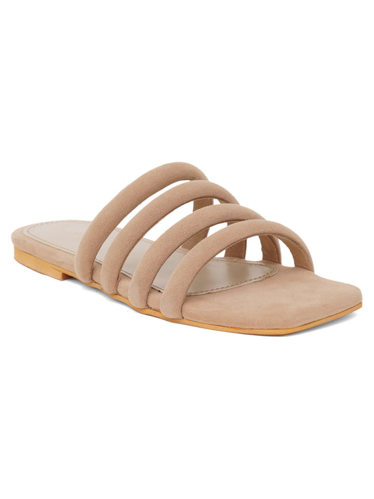 Open-Toe Flats with Embellished Orange Leaf Detail