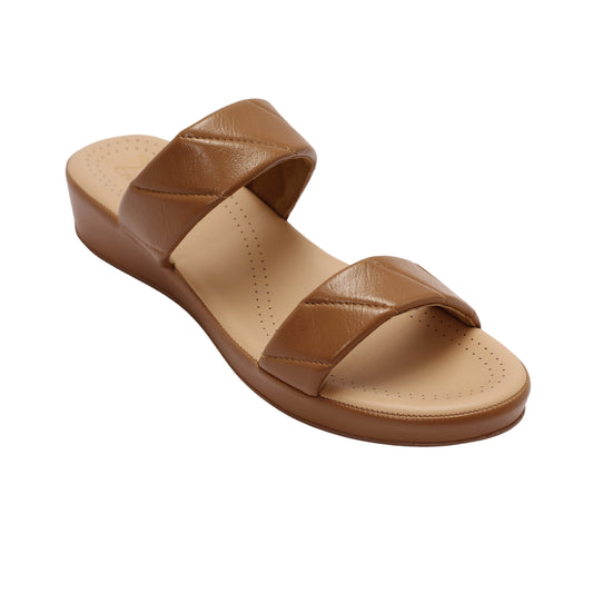 Clayra - Women’s Tan & White Dual-Tone Cut (Out Sliders)