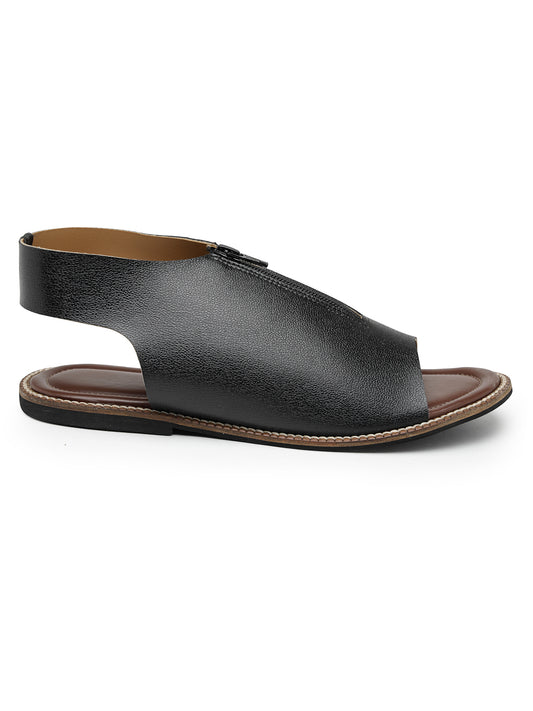 Elanberg Faux Leather Slip-On Brown Sandals