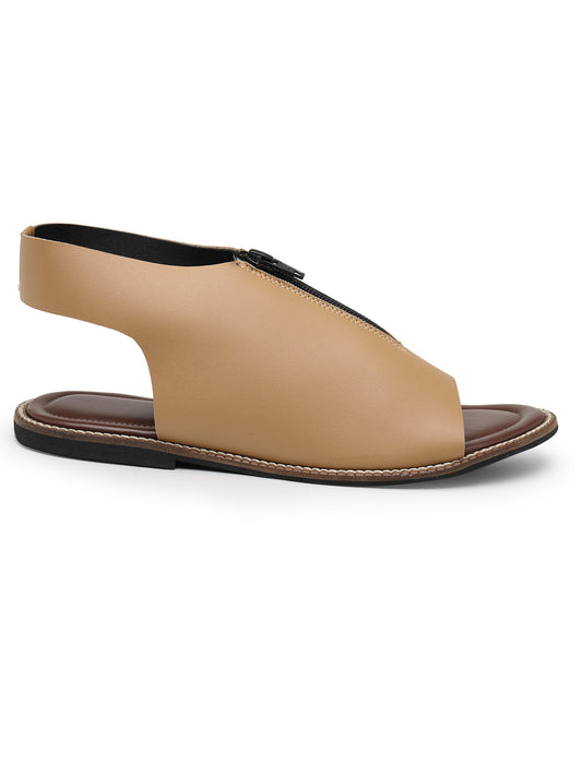 ELANBERG Tan Mules Backstrap Flats