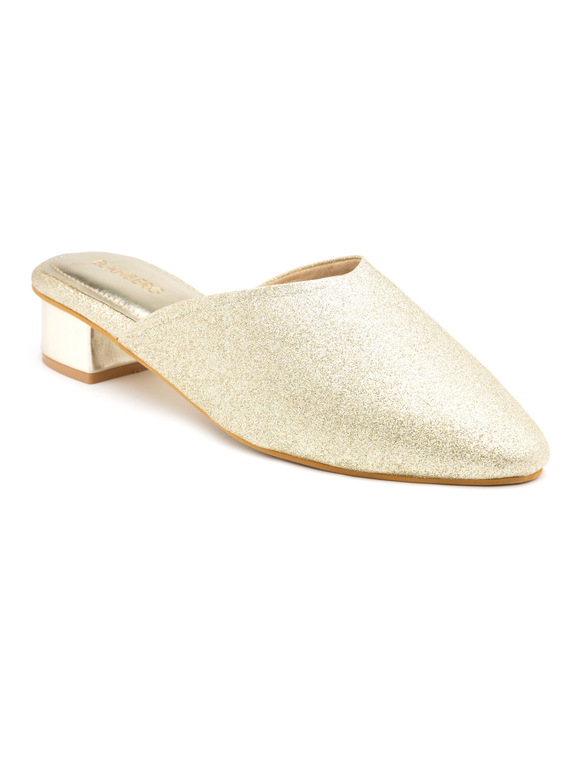 Elevate your look with Lustara, a stunning pair of shimmer mules crafted for the modern woman who loves understated glamour. Featuring a round pointed-toe front and an easy slip-on design, these mules blend comfort with refined elegance. The low metallic-accent block heel adds just the right amount of lift, making Lustara a versatile choice for festive events, weddings, or chic evening outings.