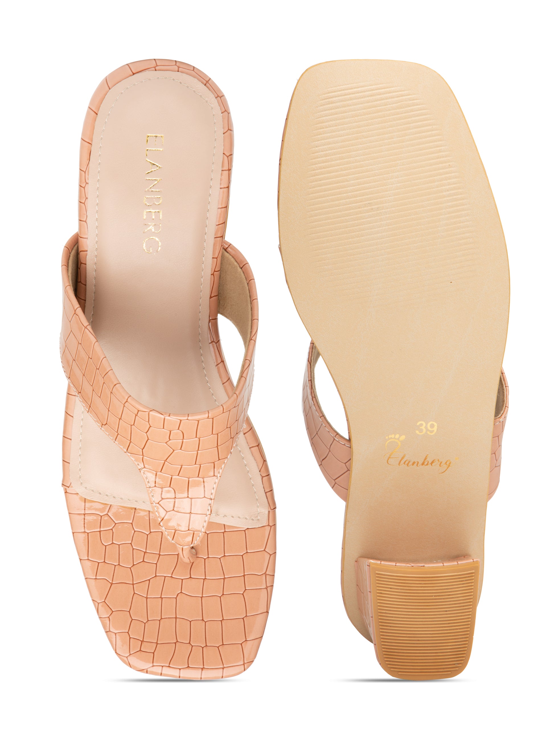 Make a bold yet sophisticated statement with Nuvina– a chic pair of croc-textured heels crafted in a glossy Nude tan finish. The modern square-toe silhouette combined with a sturdy block heel ensures all-day comfort without compromising on style. Designed for women who love a balance of elegance and ease, this pair seamlessly transitions from day meetings to evening outings.