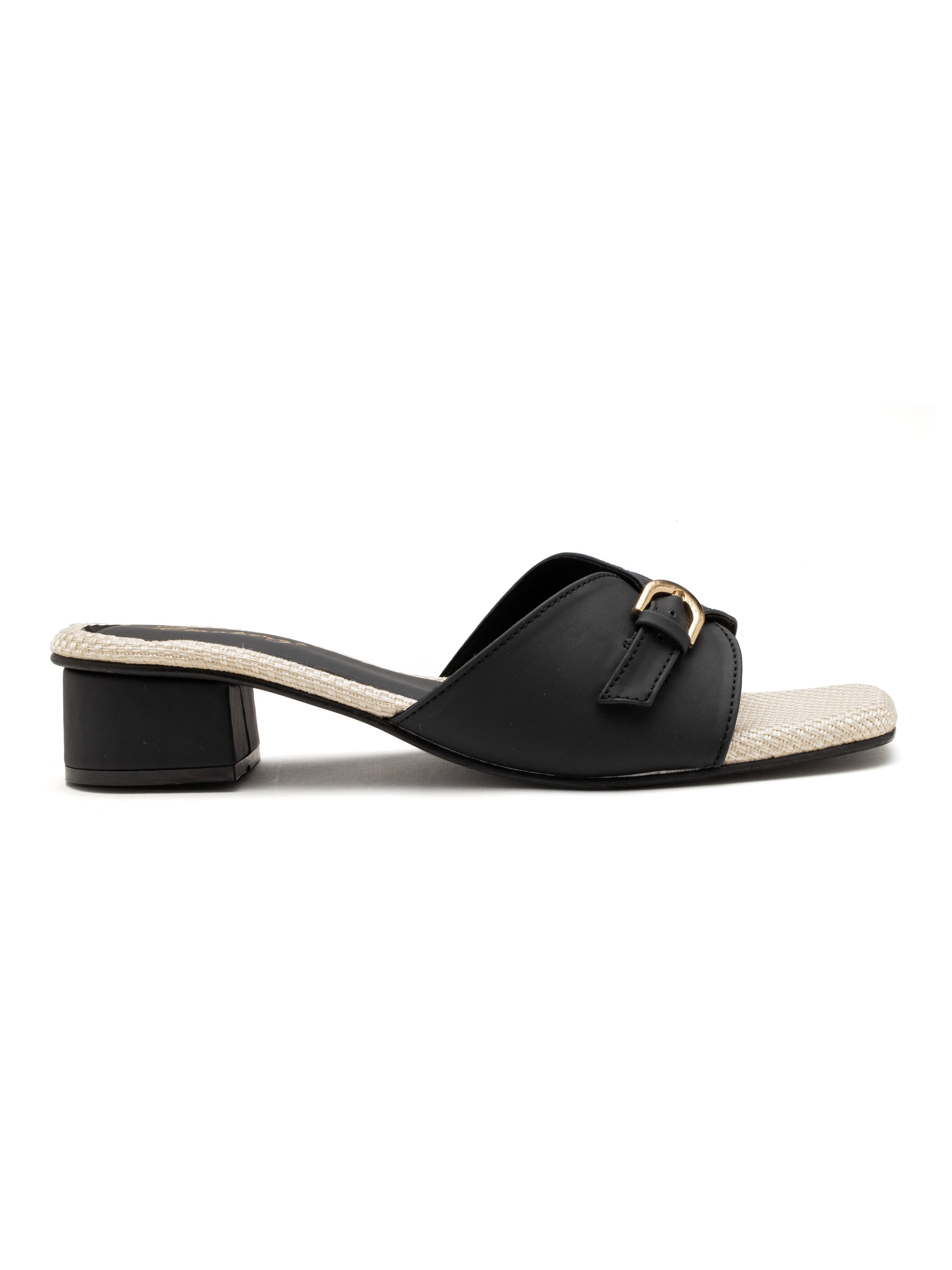 Make a bold statement with Obriva, a refined block heel sandal featuring a black wrap strap with gold buckle over a woven beige base. The square toe and cushioned insole provide all-day comfort, while the block heel ensures stability. Elegant and versatile, Obriva transitions seamlessly from office sophistication to evening chic.
